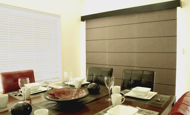 This modern alternative will add real value to any residential or commercial application. Perfect for door coverings or room dividers, the panel glide will add a contemporary look to your home or office. With a choice of timber battens or a concealed rear batten, your options are kept open. Available in a block out fabric for complete privacy or a light filtering fabric, panel glides are perfect for any window. This style of window covering really is personalised.
